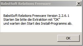 Wenn alles erfolgreich läuft, erscheint dieses Dialog-Fenster zum Start der De-Komprimierung des Install-Programms.